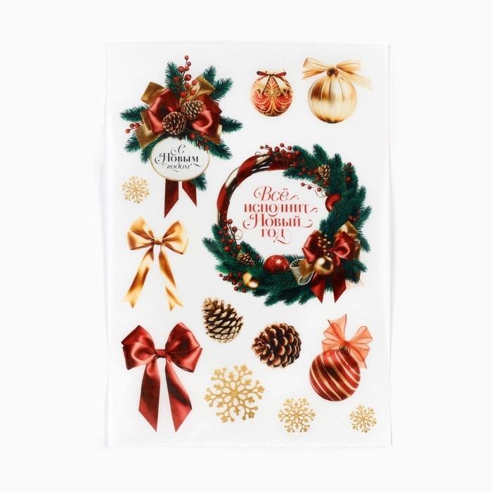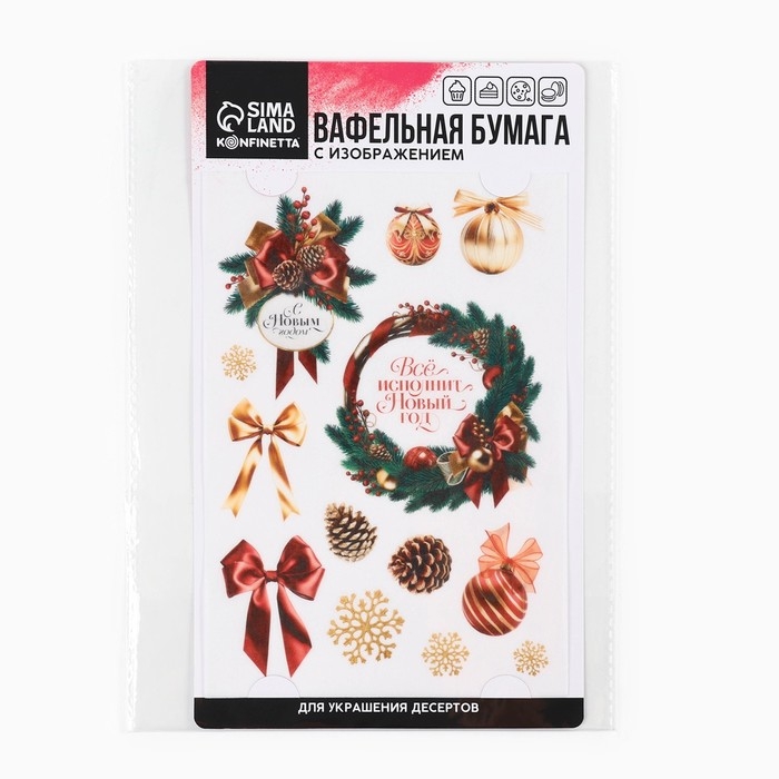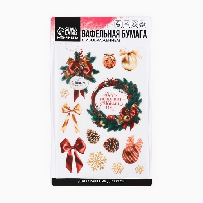 Вафельные картинки съедобные «Всё исполнит Новый год» для декора тортов и капкейков, 1 лист