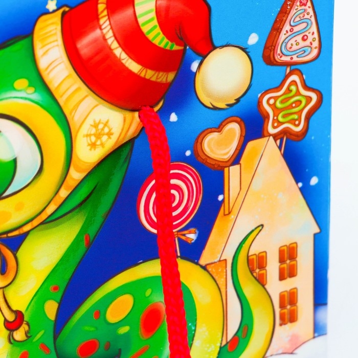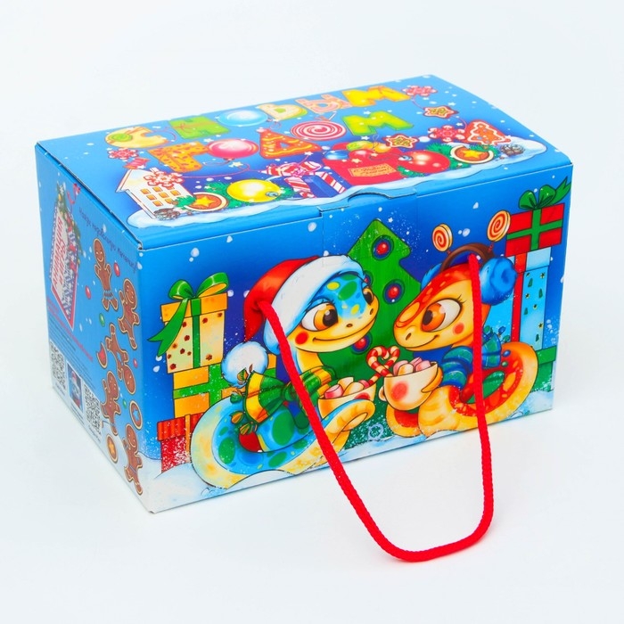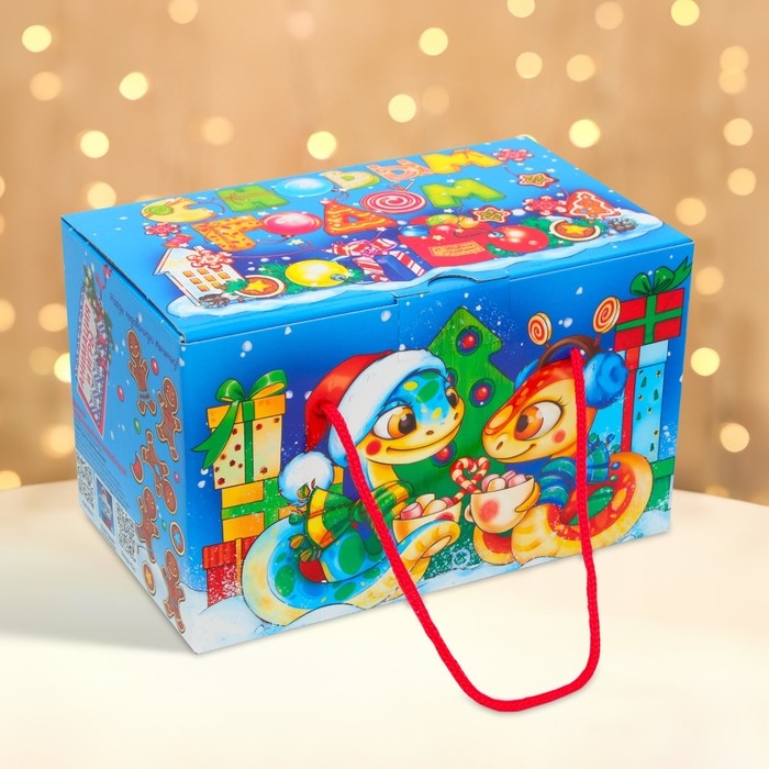 Новый год. Подарочная коробка Новогодняя Посылка "Змеята" с веревочными ручками с анимацией 20 x12 см.
