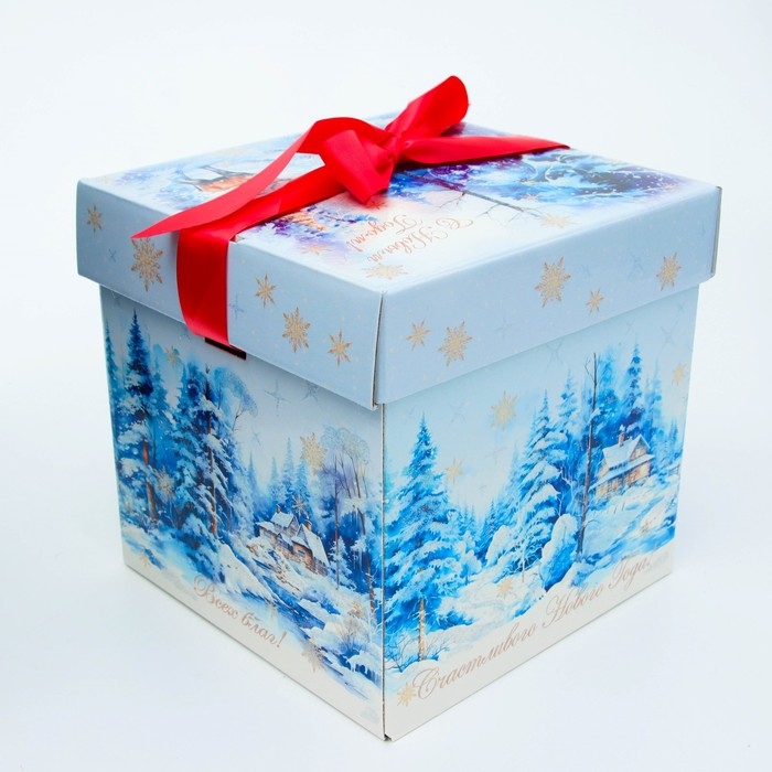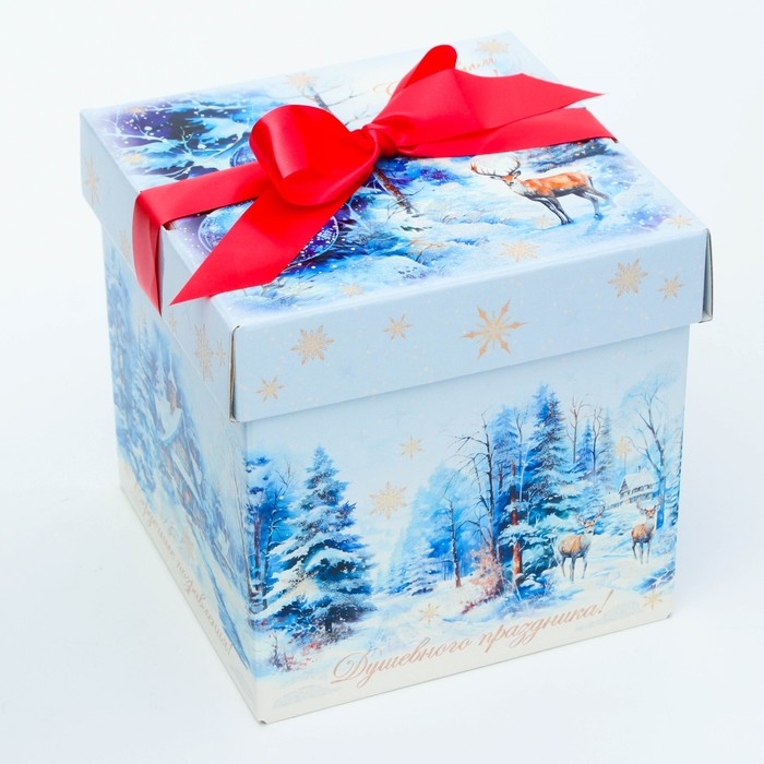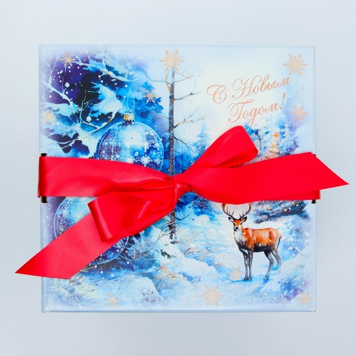 Новый год. Подарочная коробка Новогодняя Коробка крышка-дно "Мечта" с атласной лентой 17 х 17 х 17 см.