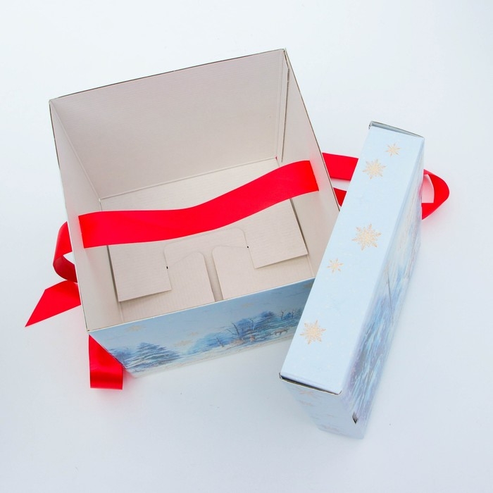 Коробка выполнена из качественных материалов, которые обеспечивают сохранность содержимого. Она имеет яркий и красочный дизайн, который отражает атмосферу Нового года.