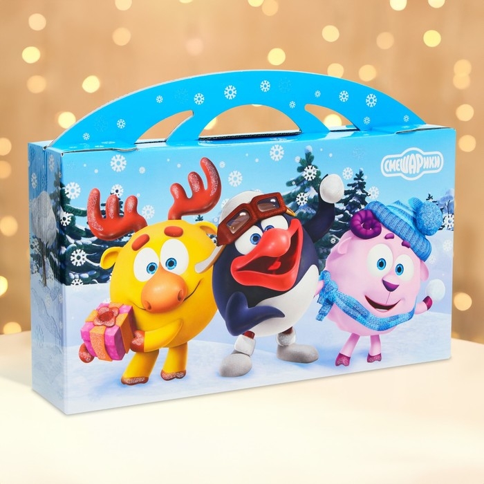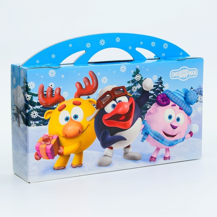 Новый год. Подарочная коробка Новогодняя Портфель макси широкий "Смешарики"лицензия 37 x 8 x 20,2 см.