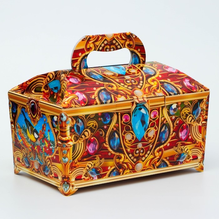 Новый год. Подарочная коробка Новогодняя Сундук обновленный "Драгоценный" 25 х 15 х 15,5 см.