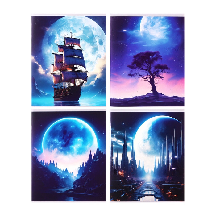 Тетрадь 96 листов в клетку Calligrata "Луна", обложка мелованный картон, матовая ламинация + выборочный УФ-лак, блок офсет МИКС