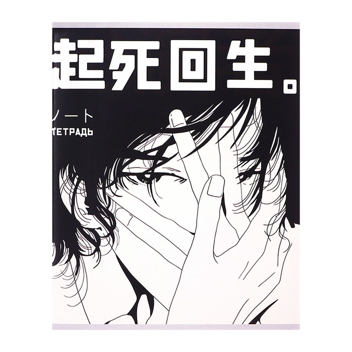 Тетрадь 96 листов в клетку Calligrata "Аниме ч/б", обложка мелованный картон, матовая ламинация + выборочный УФ-лак, блок офсет МИКС