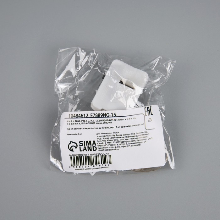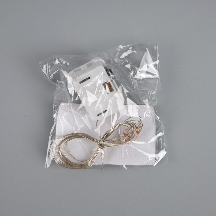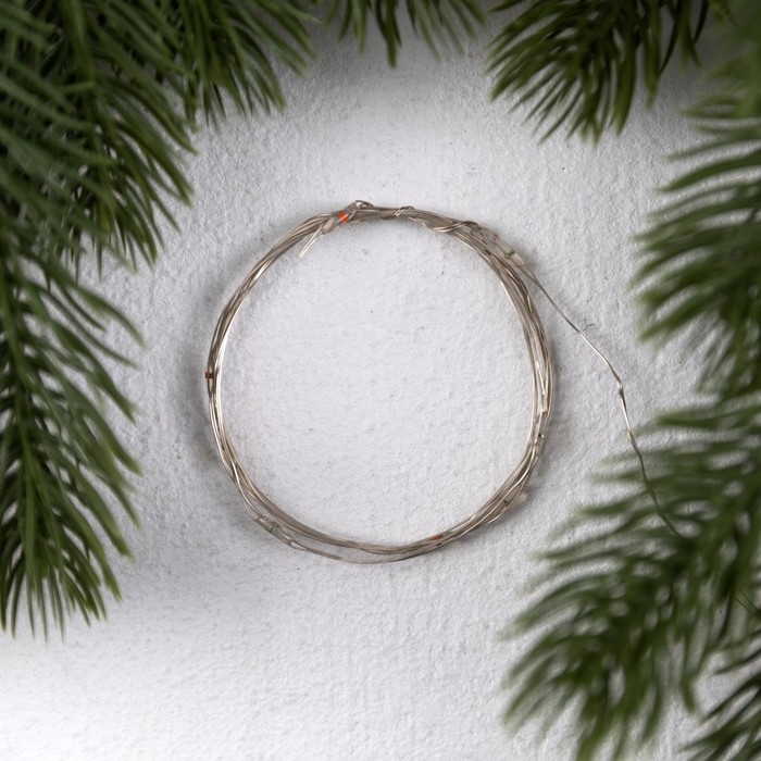 Гирлянда «Нить» 1 м роса. IP20, нить серебристая, 10 LED, 4.6 В, AG13x3 (в комплекте), 3 режима, свечение красное