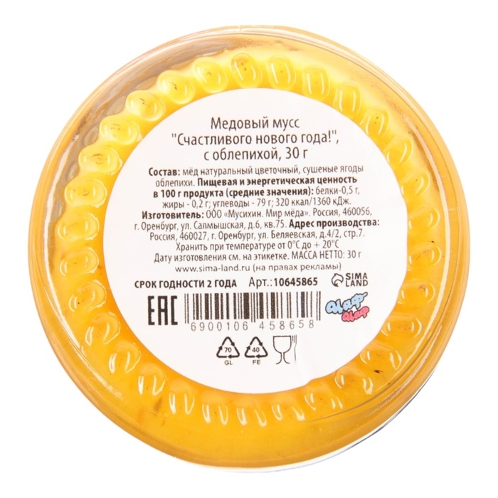 Новый год. Медовый мусс с облепихой "Счастливого Нового года", 30г