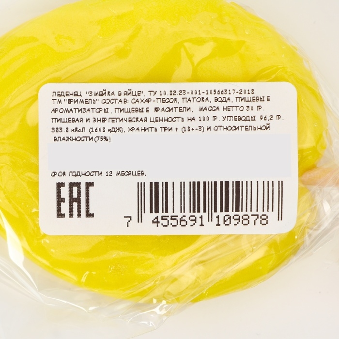 Новый год. Леденец с печатью "Змейка в яйце" микс, 30 г