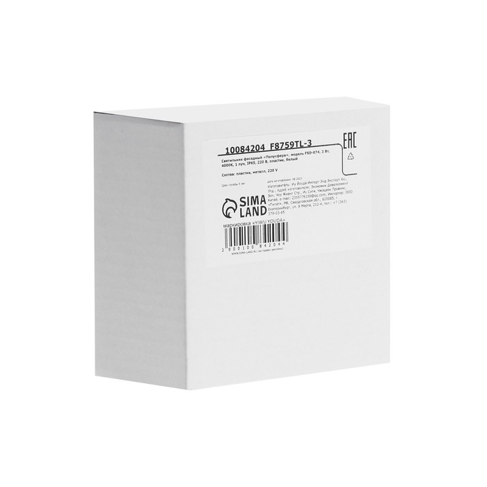 Светильник фасадный «Полусфера», FSD-074, 2 Вт, 4000К, 1 луч, IP65, 220 В, пластик, белый