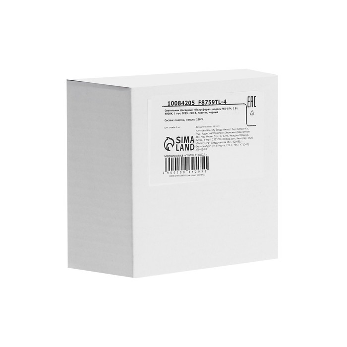 Светильник фасадный «Полусфера», FSD-074, 2 Вт, 4000К, 1 луч, IP65, 220 В, пластик, черный 1008420