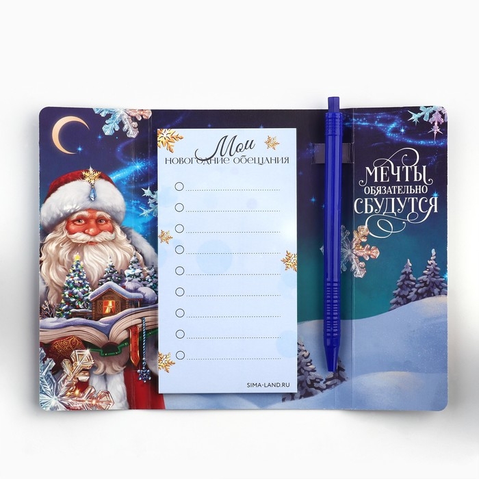 Подарочный набор новогодний «Мечты сбываются в Новом году! Дед Мороз», планинг-стикеры 30 л, ручка пластик