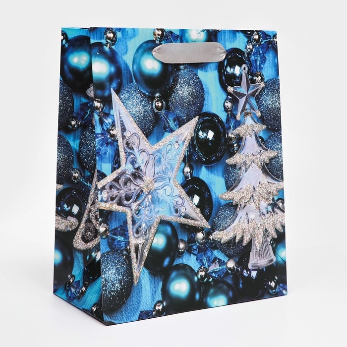 Новый год. Пакет подарочный, ламинированный, "Звезда",18 х 23 х 10 см.