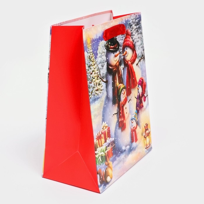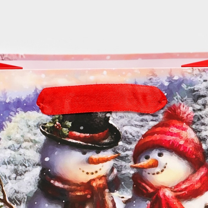 Новый год. Пакет подарочный, ламинированный, "Снеговики",18 х 23 х 10 см.