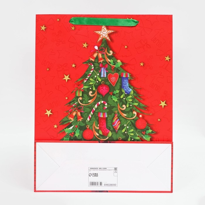Подарочный пакет, ламинированный и новогодний, размером 31 х 40 х 11,5 см — это идеальный выбор для упаковки ваших праздничных сюрпризов. Этот пакет сочетает в себе практичность и элегантный дизайн, который украсит любой подарок и создаст особую атмосферу волшебства и радости.