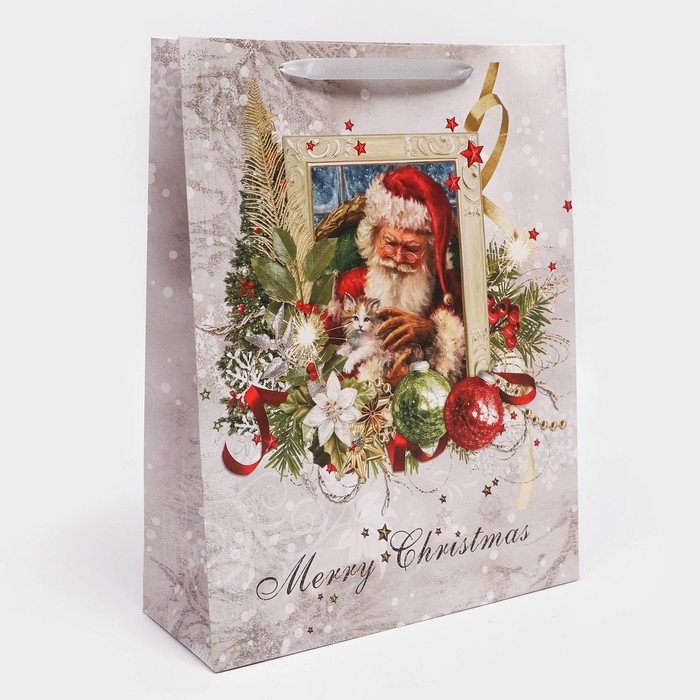 Подарочный пакет, ламинированный и новогодний, размером 31 х 40 х 11,5 см — это идеальный выбор для упаковки ваших праздничных сюрпризов. Этот пакет сочетает в себе практичность и элегантный дизайн, который украсит любой подарок и создаст особую атмосферу волшебства и радости.