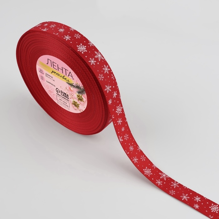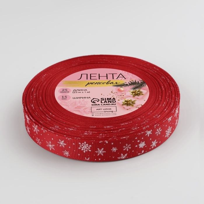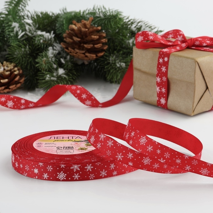 Новый год! Лента репсовая «Снежинки», 15 мм, 23 ± 1 м, цвет тёмно-красный/белый