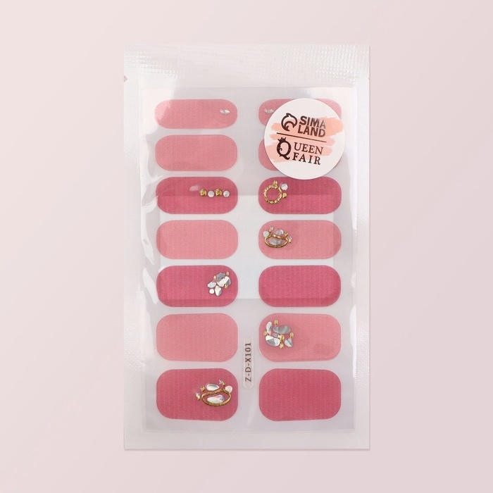Лаковые полоски для маникюра, 14 шт, цвет розовый