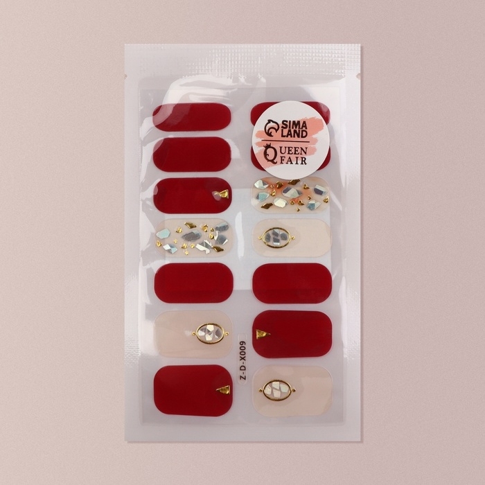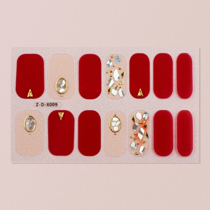 Лаковые полоски для маникюра, 14 шт, цвет бордовый/бежевый