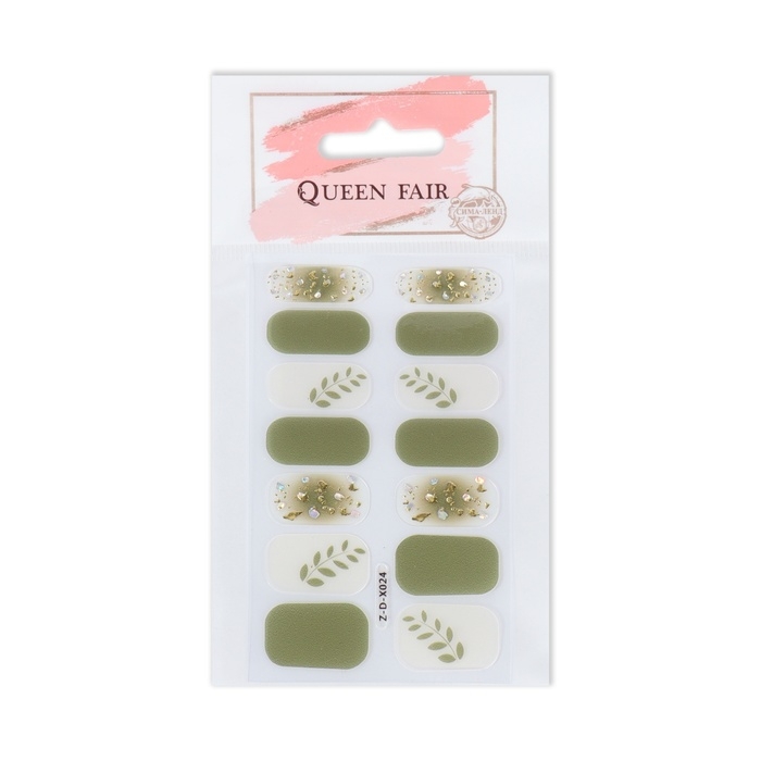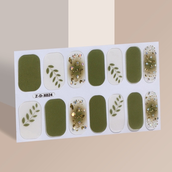 Лаковые полоски для маникюра, 14 шт, цвет бежевый/зелёный