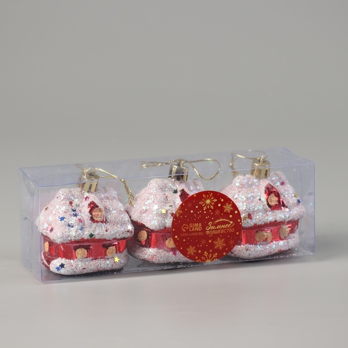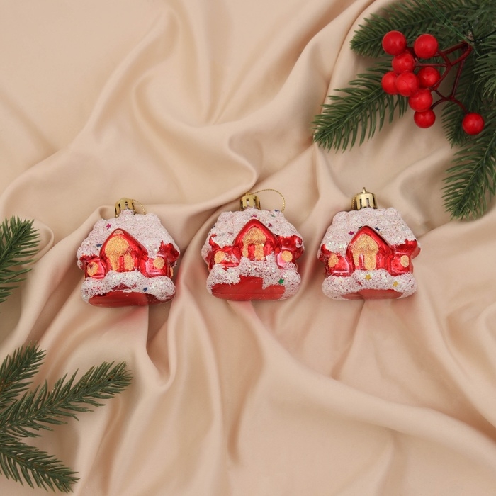 Украшение ёлочное "Заснеженный домик" (набор 3 шт) 6х5 см, красно-белый