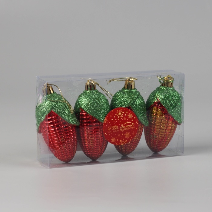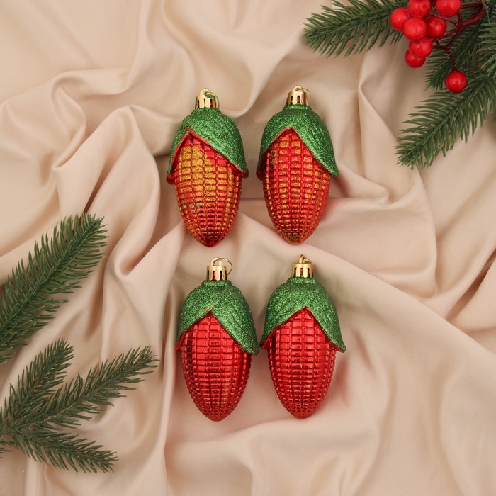 Украшение ёлочное "Кукуруза колор" (набор 4 шт) 10х4 см, красный