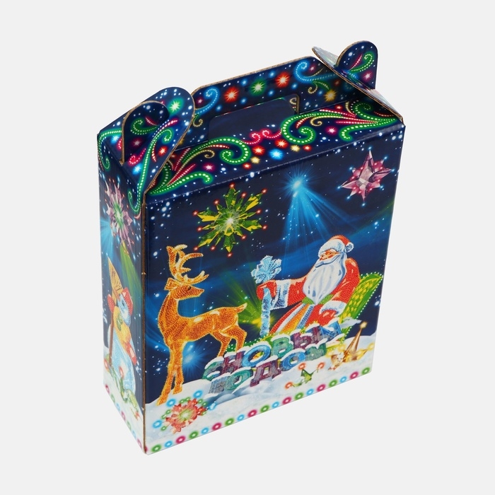 Коробка выполнена из качественных материалов, которые обеспечивают сохранность содержимого. Она имеет яркий и красочный дизайн, который отражает атмосферу Нового года.