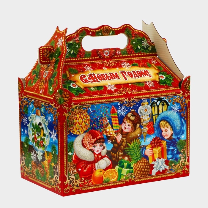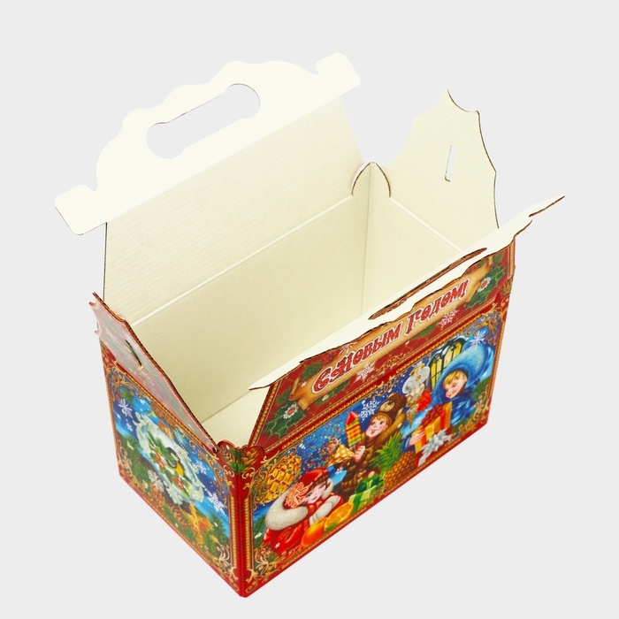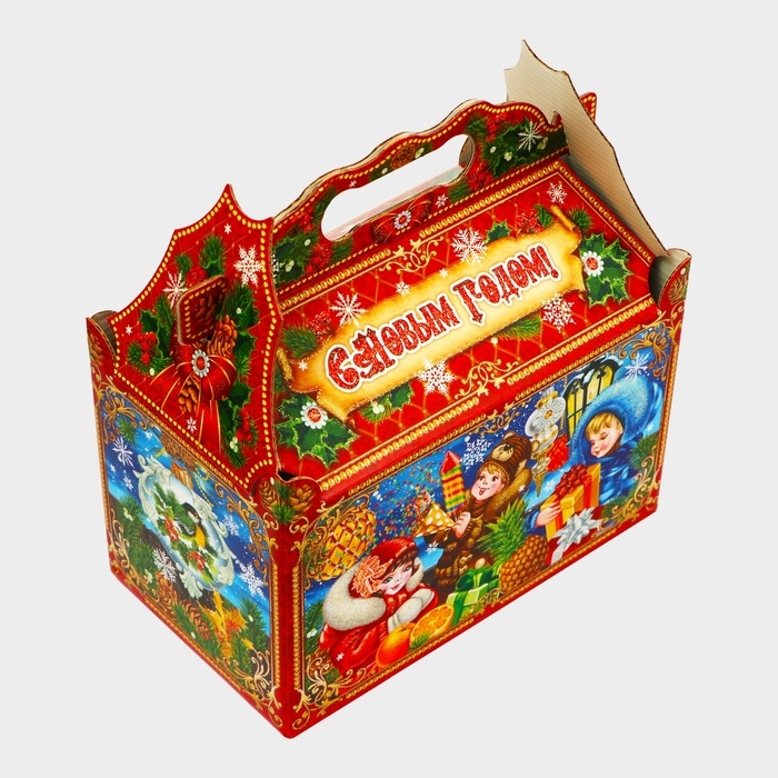 Коробка выполнена из качественных материалов, которые обеспечивают сохранность содержимого. Она имеет яркий и красочный дизайн, который отражает атмосферу Нового года.