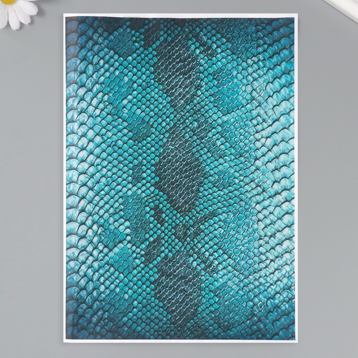 Новогодняя декупажная карта "Кожа змеи",бирюзовый, плотность 45 г/м2, формат А4