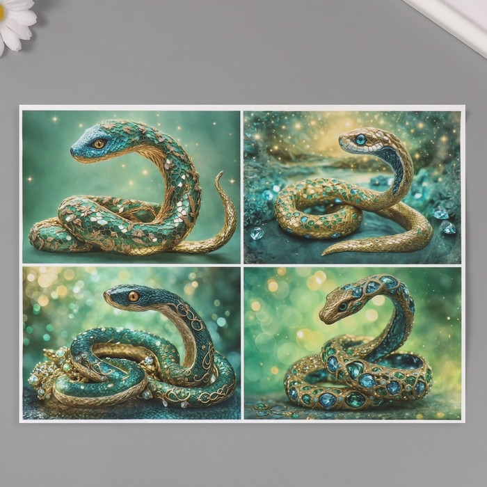 Новогодняя декупажная карта "Драгоценная змея", плотность 45 г/м2, формат А4