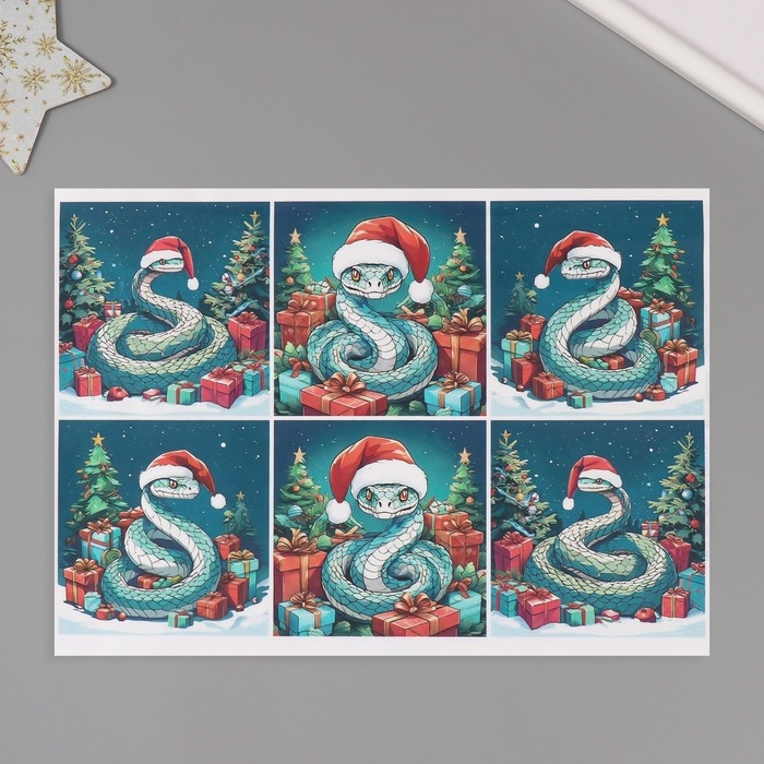 Новогодняя декупажная карта "Змеи. Сивол года 2025", плотность 45 г/м2, формат А4