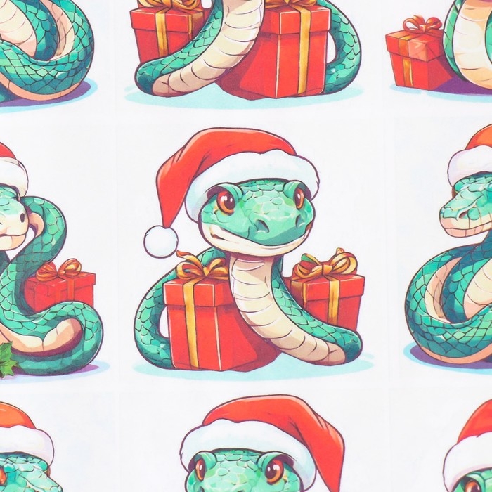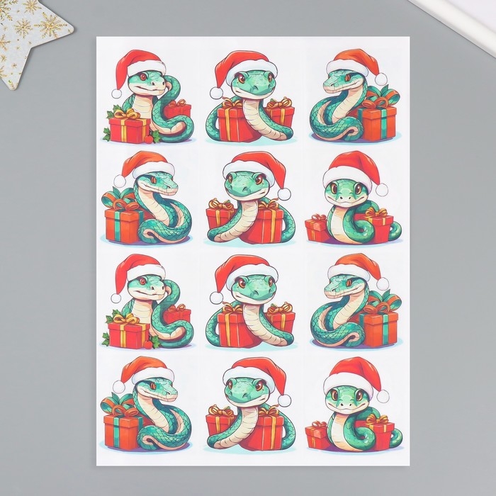 Новогодняя декупажная карта "Змеи в шапке Деда Мороза", плотность 45 г/м2, формат А4