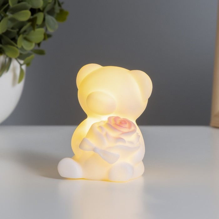 Ночник "Мишка с розой" 2Вт LED LR44 белый 4х5,5х7см