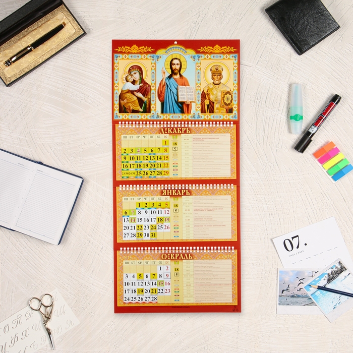 Календарь настенный квартальный православный трио "Спаситель" 2025 год, 31 х 68 см