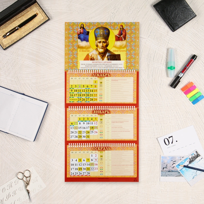 Календарь настенный квартальный православный трио "Николай чудотворец" 2025 год, 31 х 68 см
