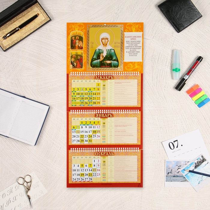 Календарь настенный квартальный православный трио "Матрона" 2025 год, 31 х 68 см