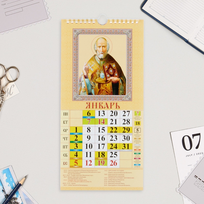 Календарь на ригеле "Святитель Николай Чудотворец" 2025 год, 16,5 х 34 см