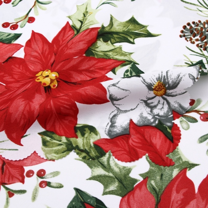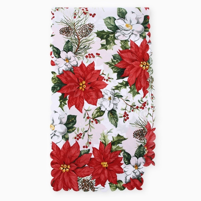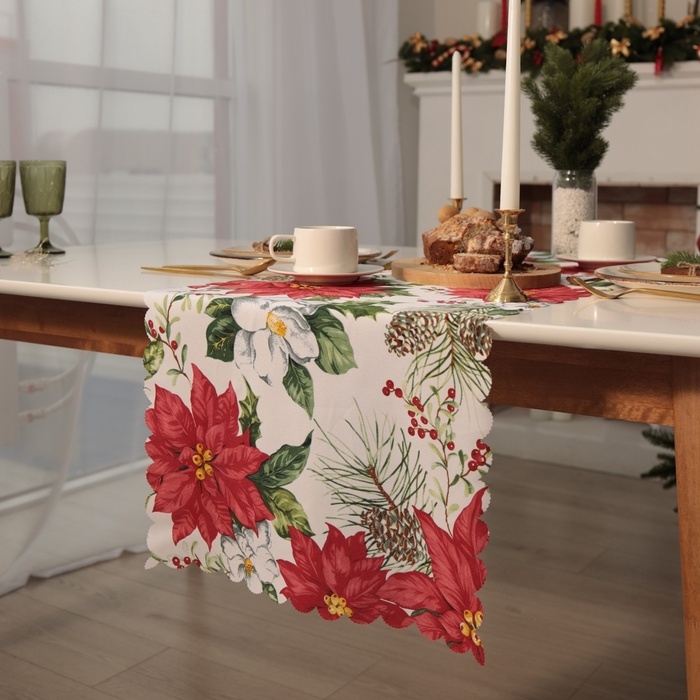 Новый год.Дорожка Доляна "Рождественские цветы" 40х145см, 100% п/э, 140гр/м2