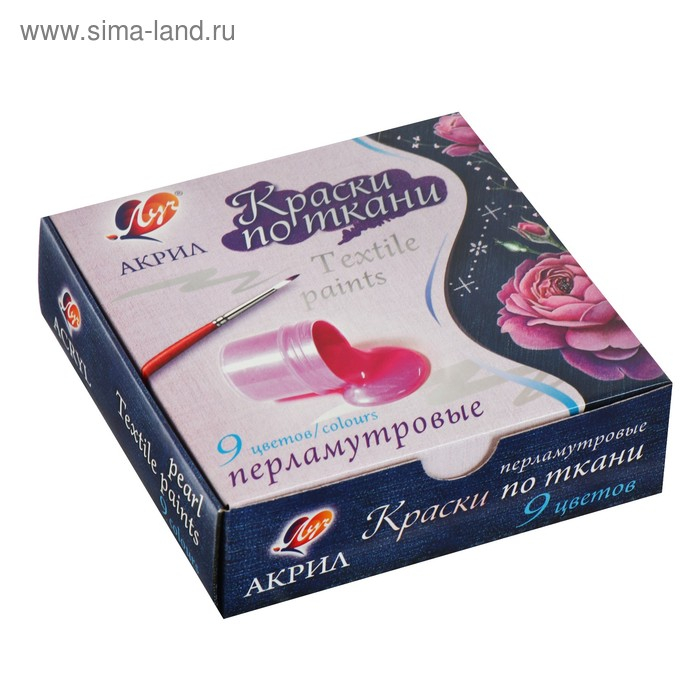 Краска по ткани, набор 9 цветов х 15 мл, Луч, перламутровая, акриловая на водной основе