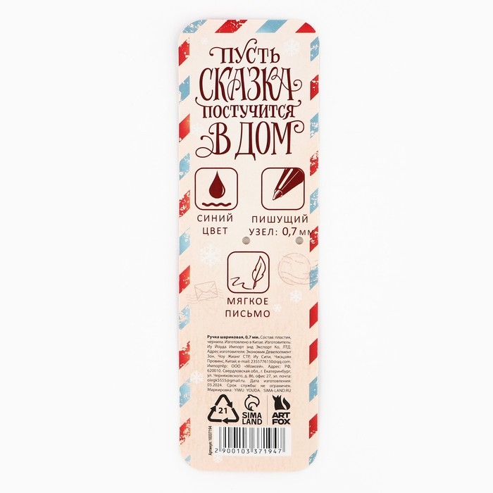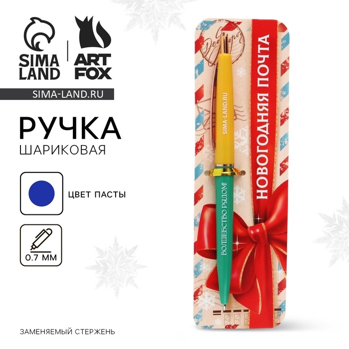 Ручка шариковая автоматическая пластик «Новый год: Новогодняя почта» 0.7 мм