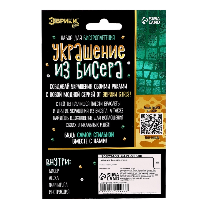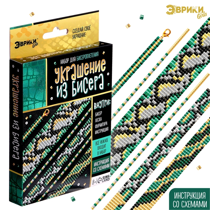 Набор для бисероплетения «Украшение из бисера», змея, зеленый