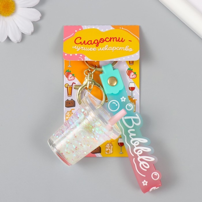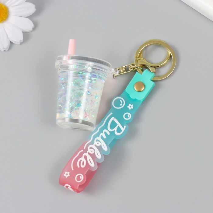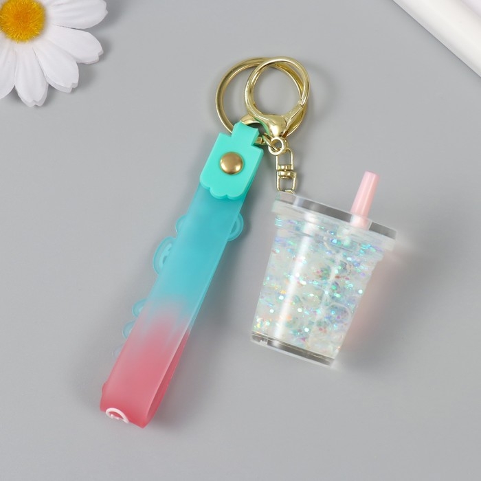 Брелок резина с карабином, ремешком "Стаканчик" водный с глиттером и жемчугом 4х4,5х4,6 см 1047328