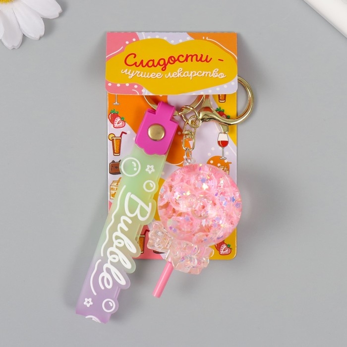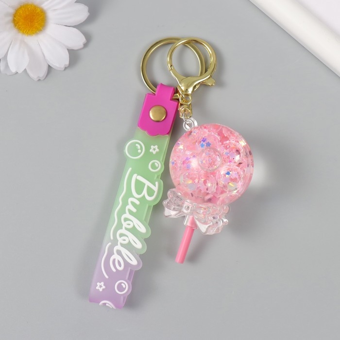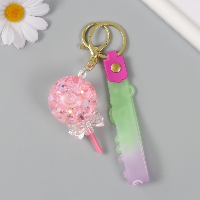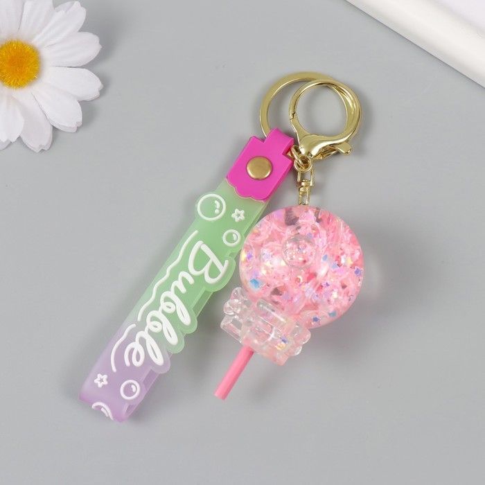 Брелок пластик с карабином, ремешком "Леденец с бантиком" водный с глиттером 4х4х6,5 см