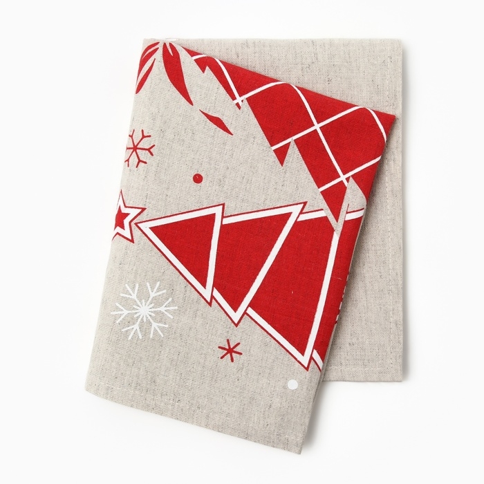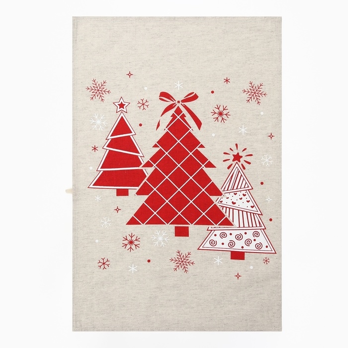 Новый год. Полотенце "Елочки красные", 39х60см, 160г/м лен50% хл50%