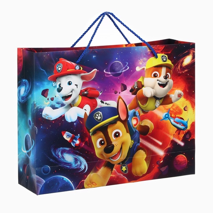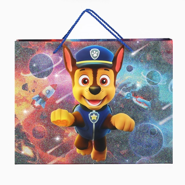 Пакет подарочный ламинированный с блестками, Щенячий патруль, 40х31х11,5 см