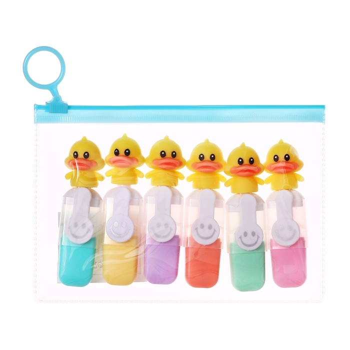 Набор маркеров текстовыделителей 6 штук 6 цветов, в пенале на молнии Утки