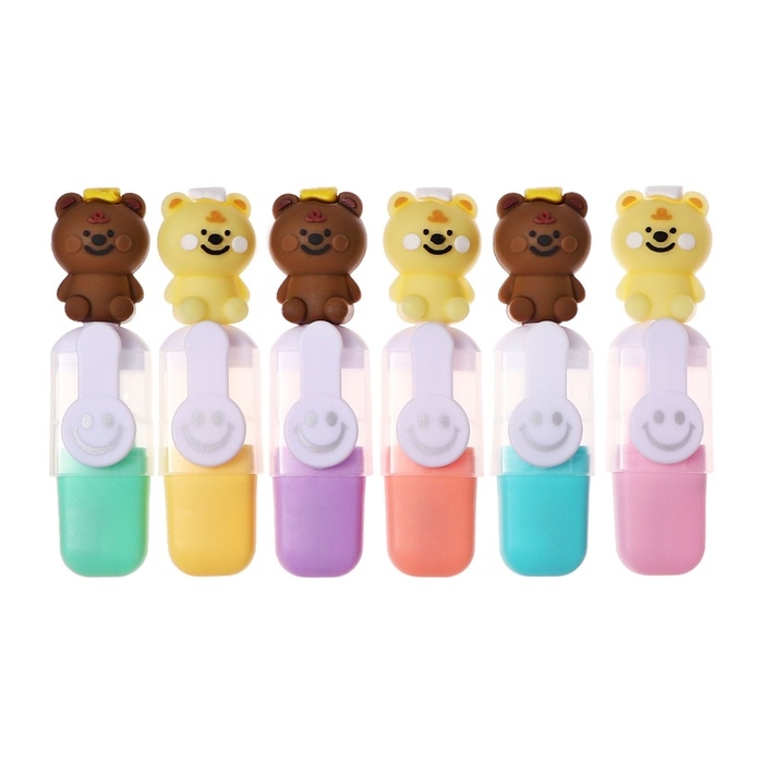 Набор маркеров текстовыделителей 6 штук 6 цветов, в пенале на молнии Медведи