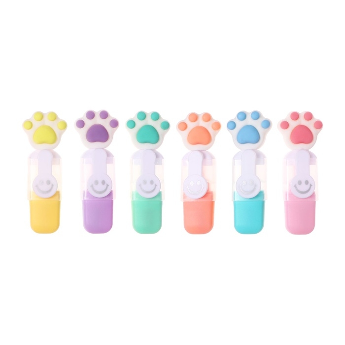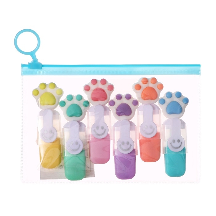 Набор маркеров текстовыделителей 6 штук 6 цветов, в пенале на молнии Лапки