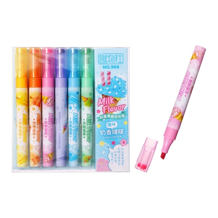 Набор маркеров текстовыделителей 6 штук 6 цветов, ароматизированные, с печатью