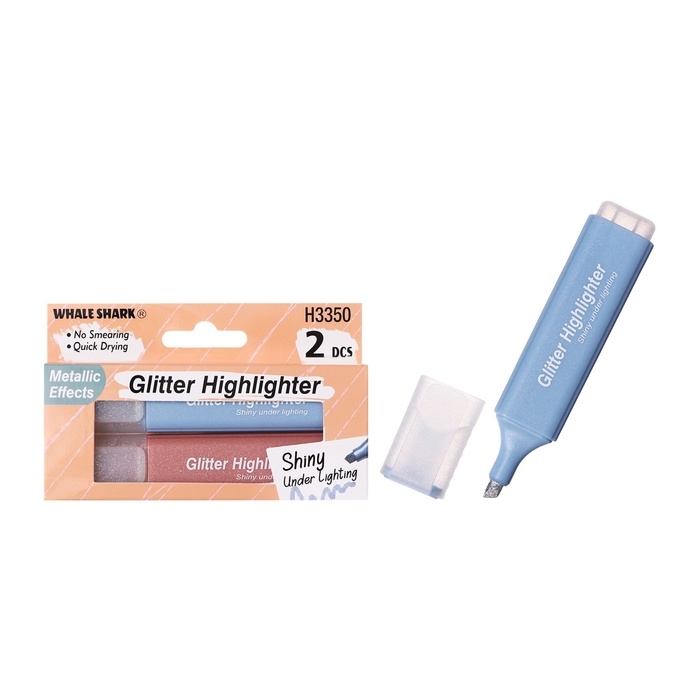 Набор маркеров текстовыделителей 2 штуки 2 цвета, блестки, золотой/серебрянный