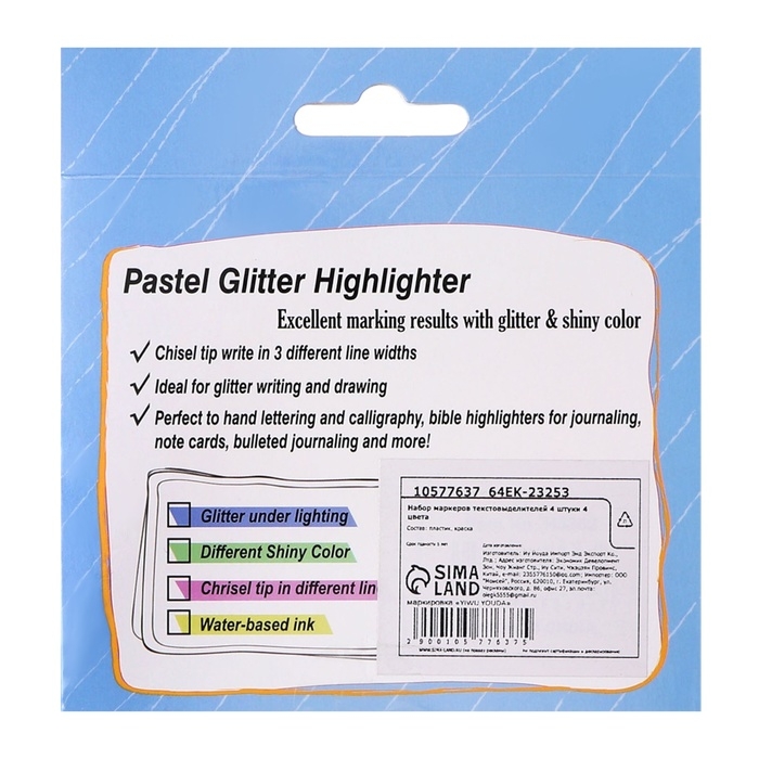 Набор маркеров текстовыделителей 4 штуки 4 цвета, блестки, Пастель