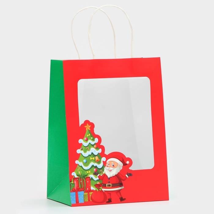 Пакет подарочный новогодний с окном "Дед мороз" 19 х 26 х 13 см.